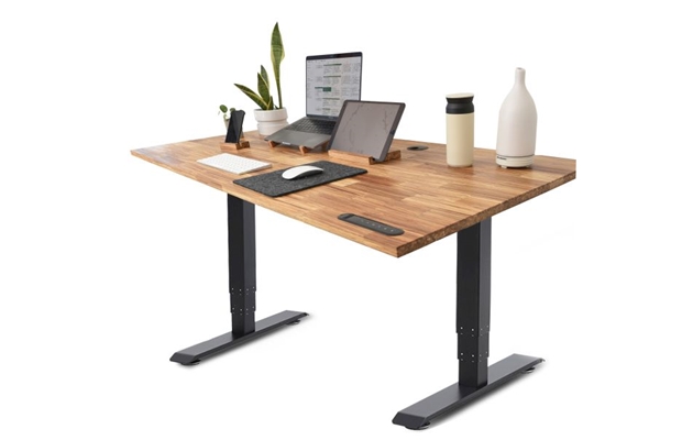 The TerraDesk Ellectric Standing Desk is a commercial-grade eco-friendly sit-stand desk made from 10,854 recycled chopsticks and is fully adjustable and programmable.